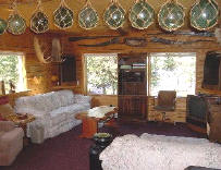fishing floats, moose antlers, trout, local wood work, sofa, loveseat,
